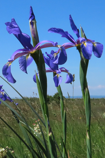 Blüten mit 6 bartlosen blau-violette Hüllblättern