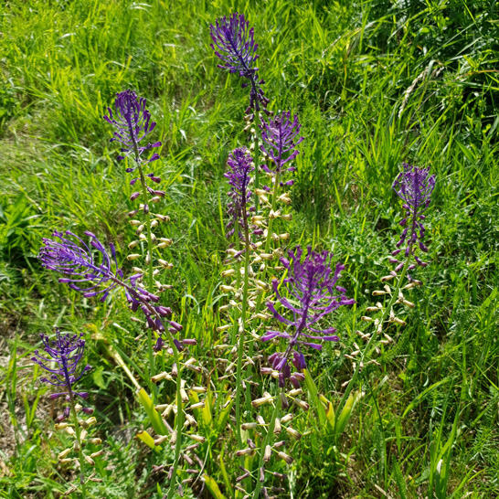 1.oben auffälliger blau-violetter Schopf(Insekten Lockung) mit nach oben gerichteten Blüten